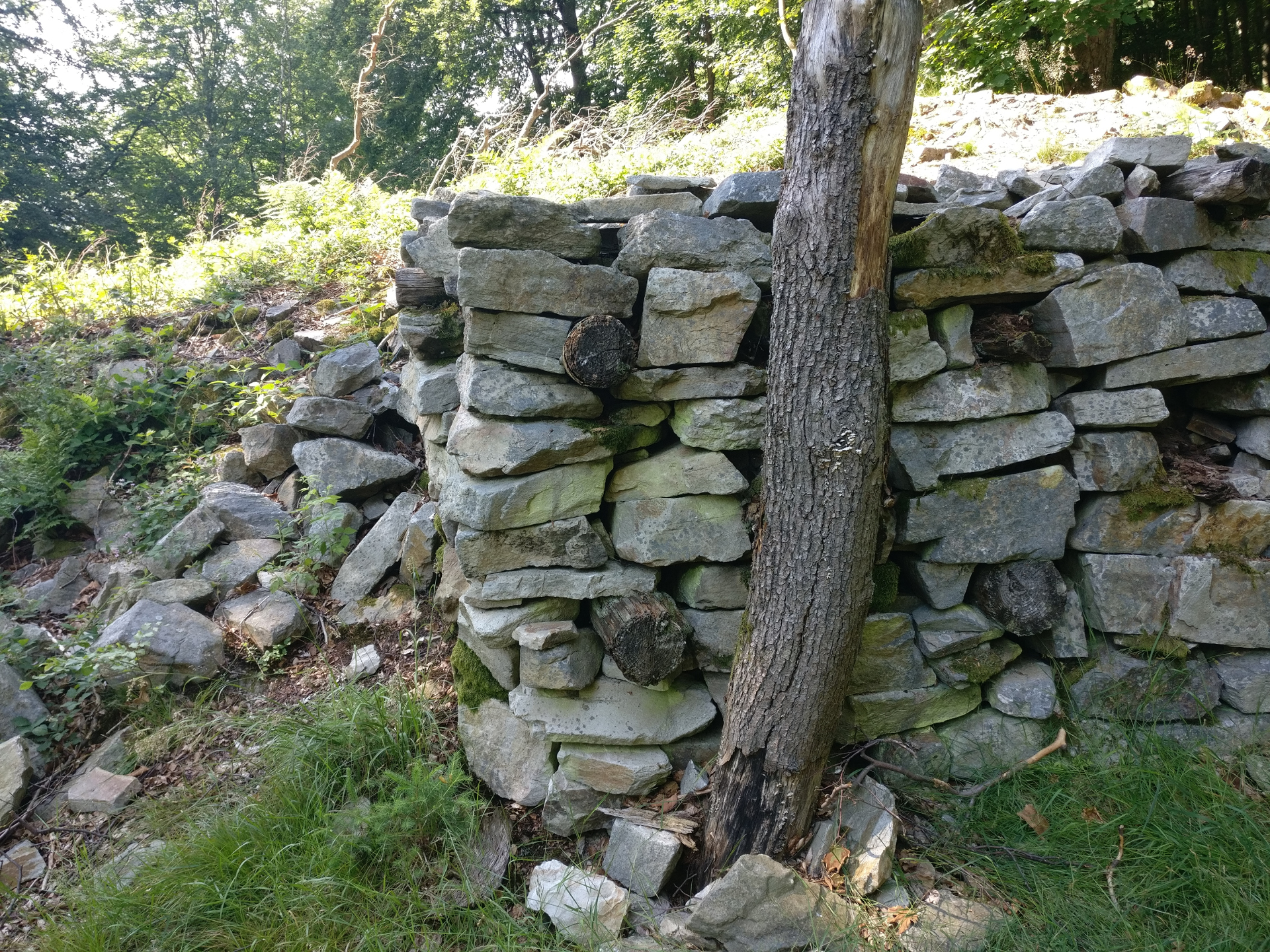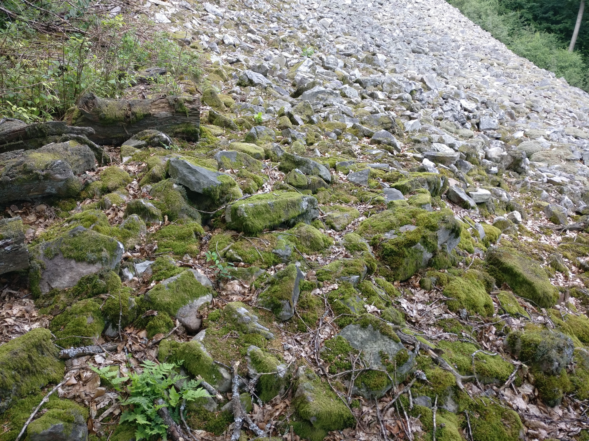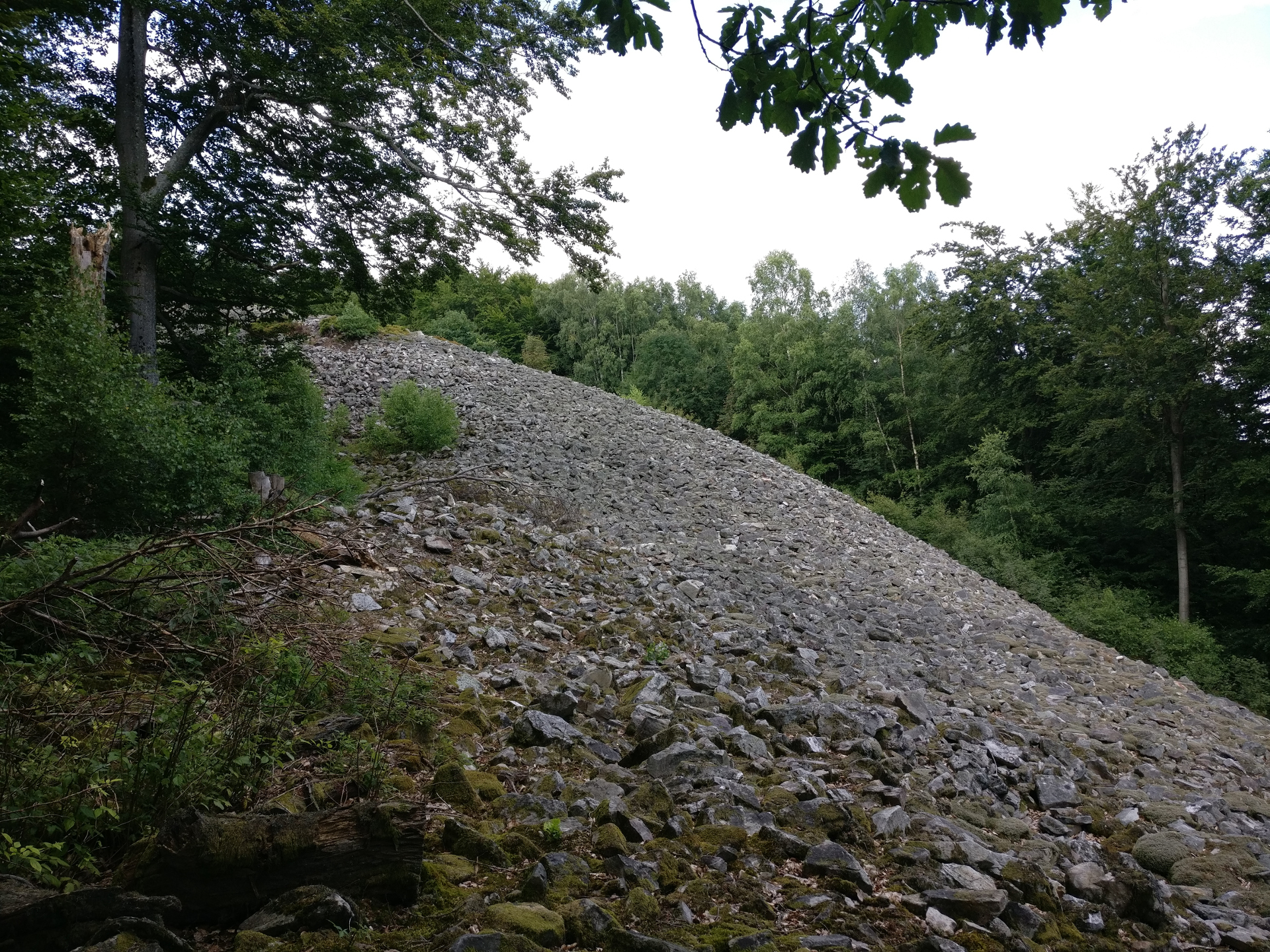 Und richtig: wenn man ihm weiter folgt, stößt man irgendwann auf einen riesigen Haufen Steine. Laut der Infotafeln sind sich die Archäologen nicht sicher, ob die Kelten damals einfach nur unzählige Steine angehäuft haben, oder ob ursprünglich eine Form der Murus Gallicus (nachzulesen bei Wikipedia) hier errichtet wurde, die über die Jahrhunderte zerfallen ist.