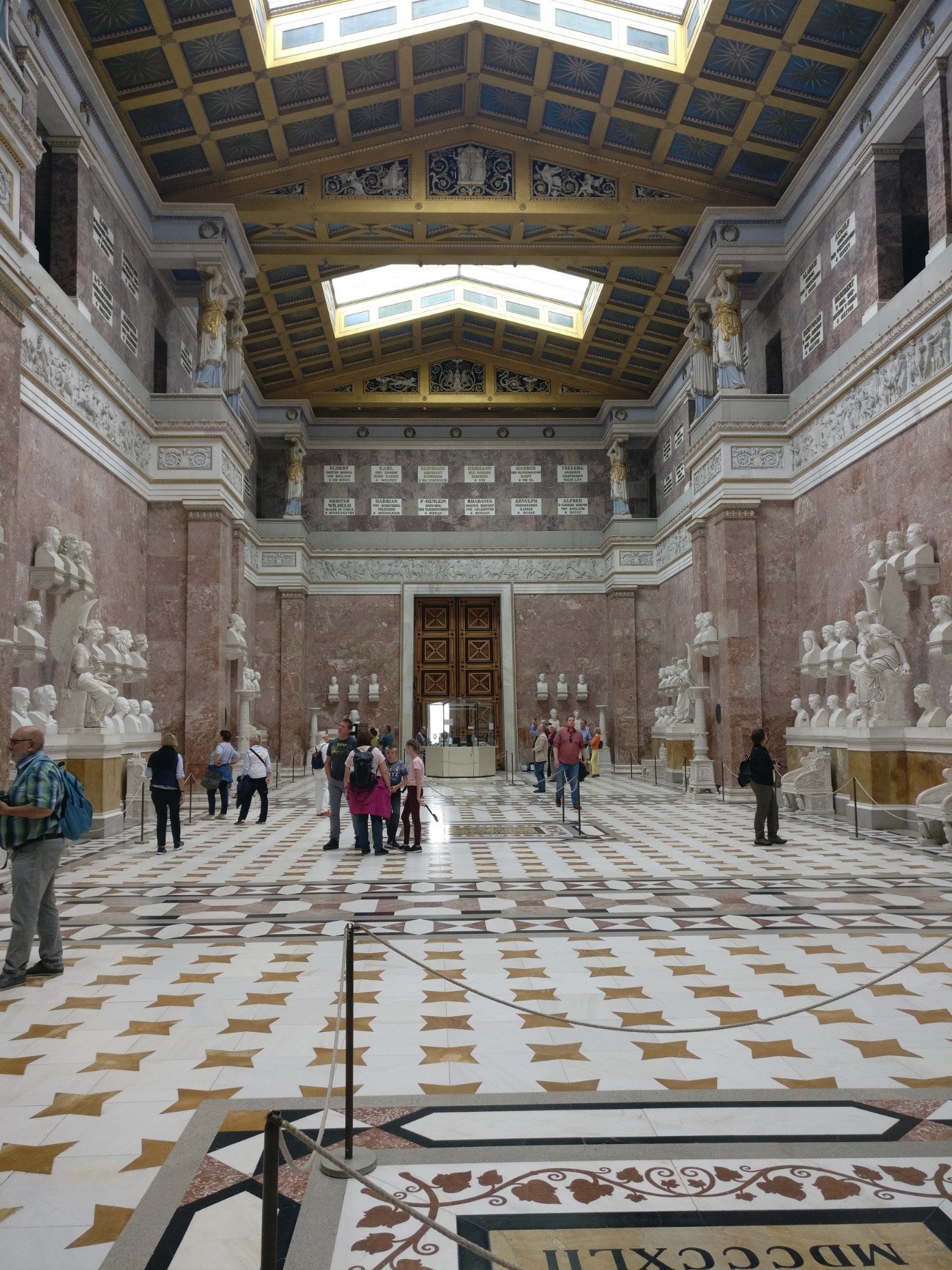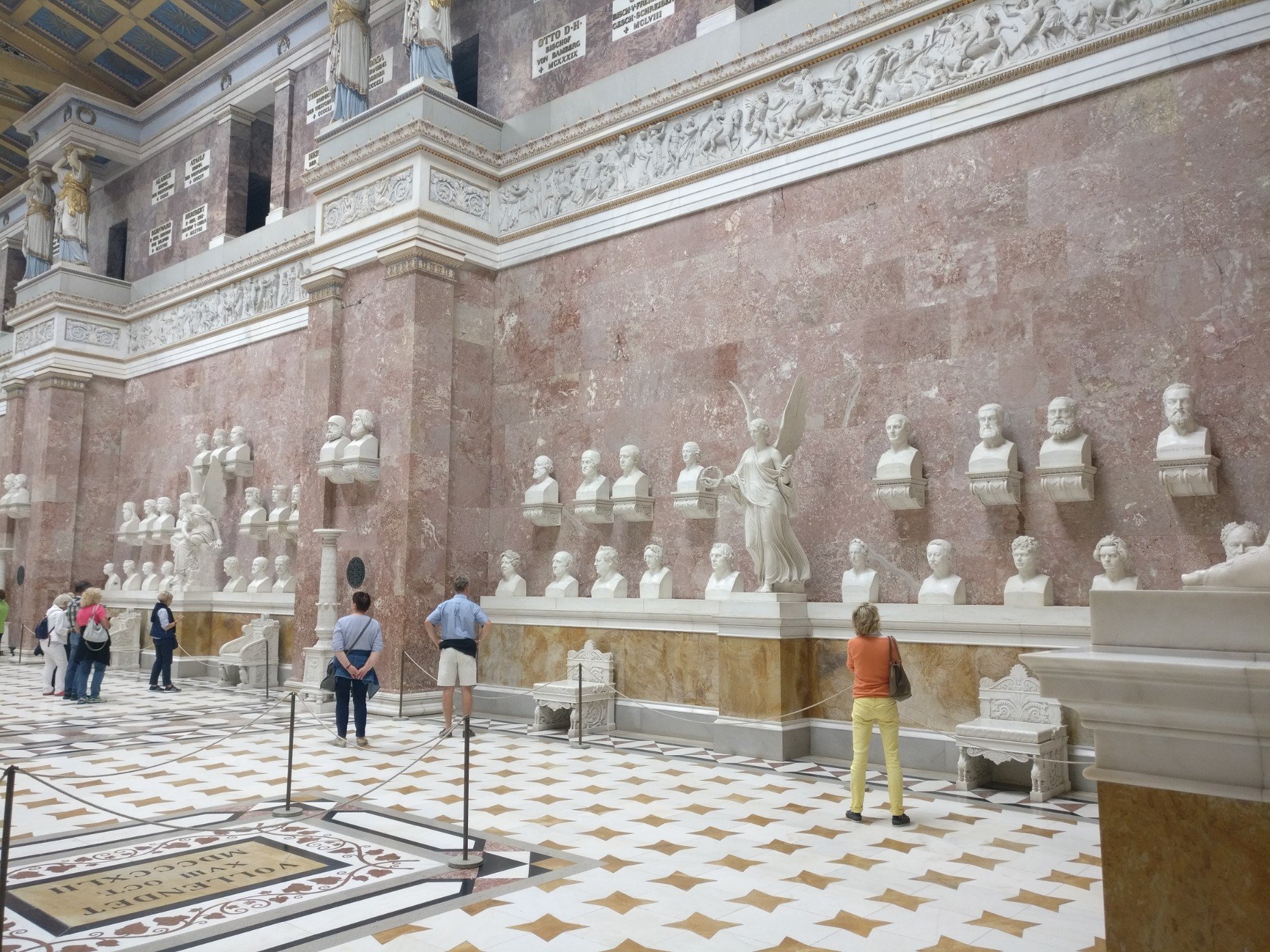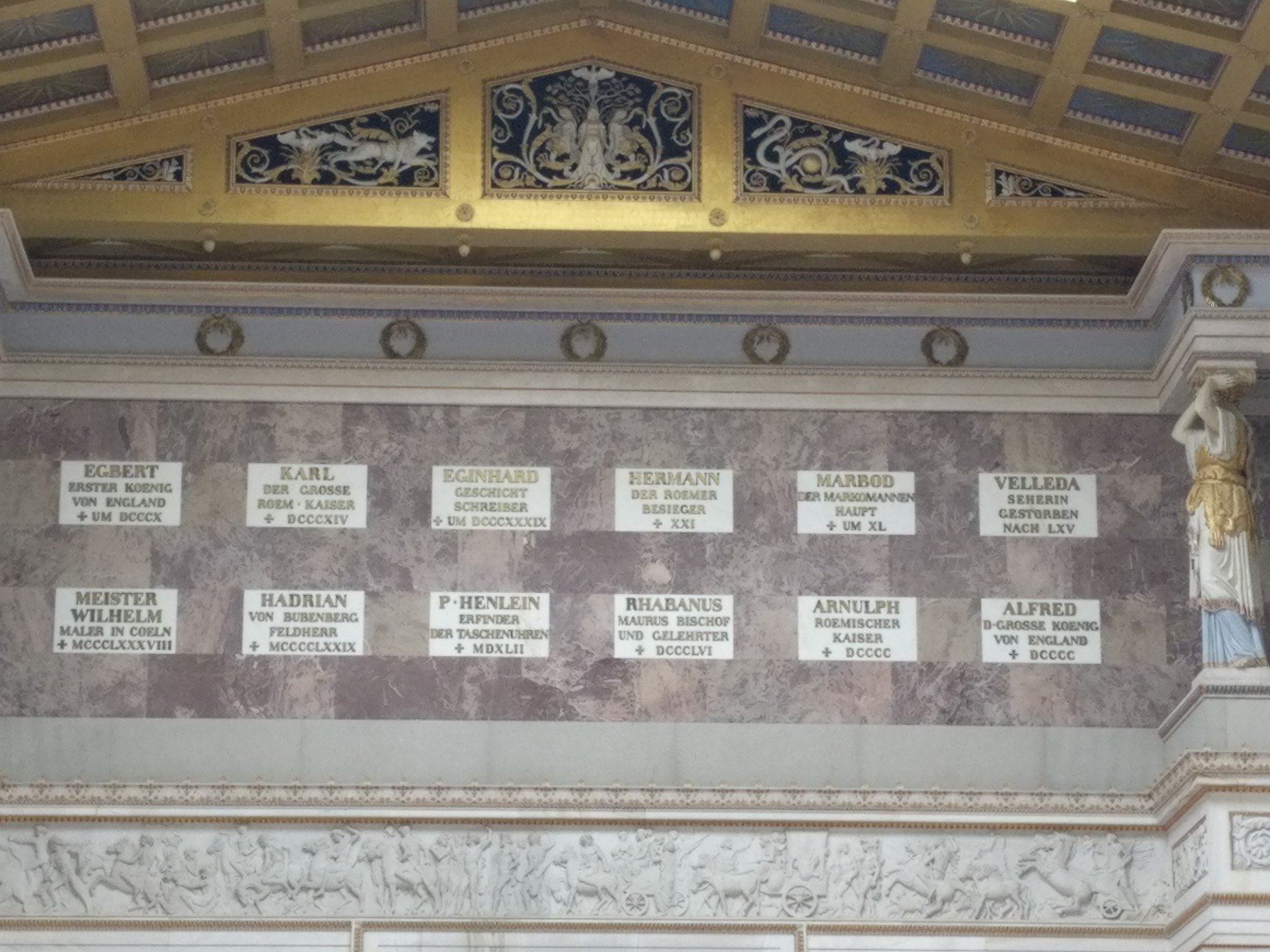 Ludwig I. lies die Halle erbauen um bedeutende Persönlichkeiten „teutscher Zunge“ (aus der germanischen Sprachfamilie) zu ehren. Allerdings kann man erst (auch heute noch) 20 Jahre nach seinem Tode dort mit einer Büste verewigt werden.