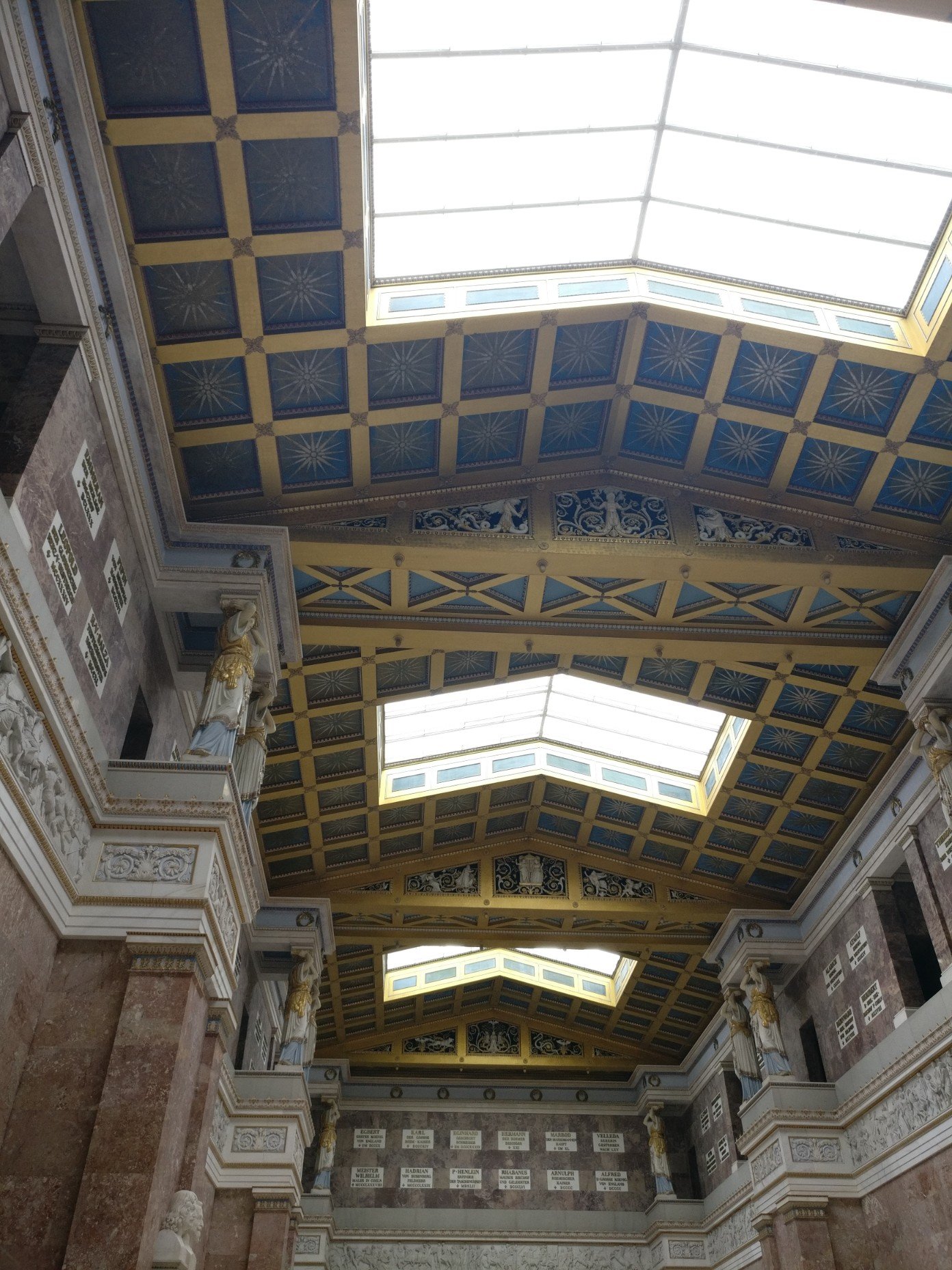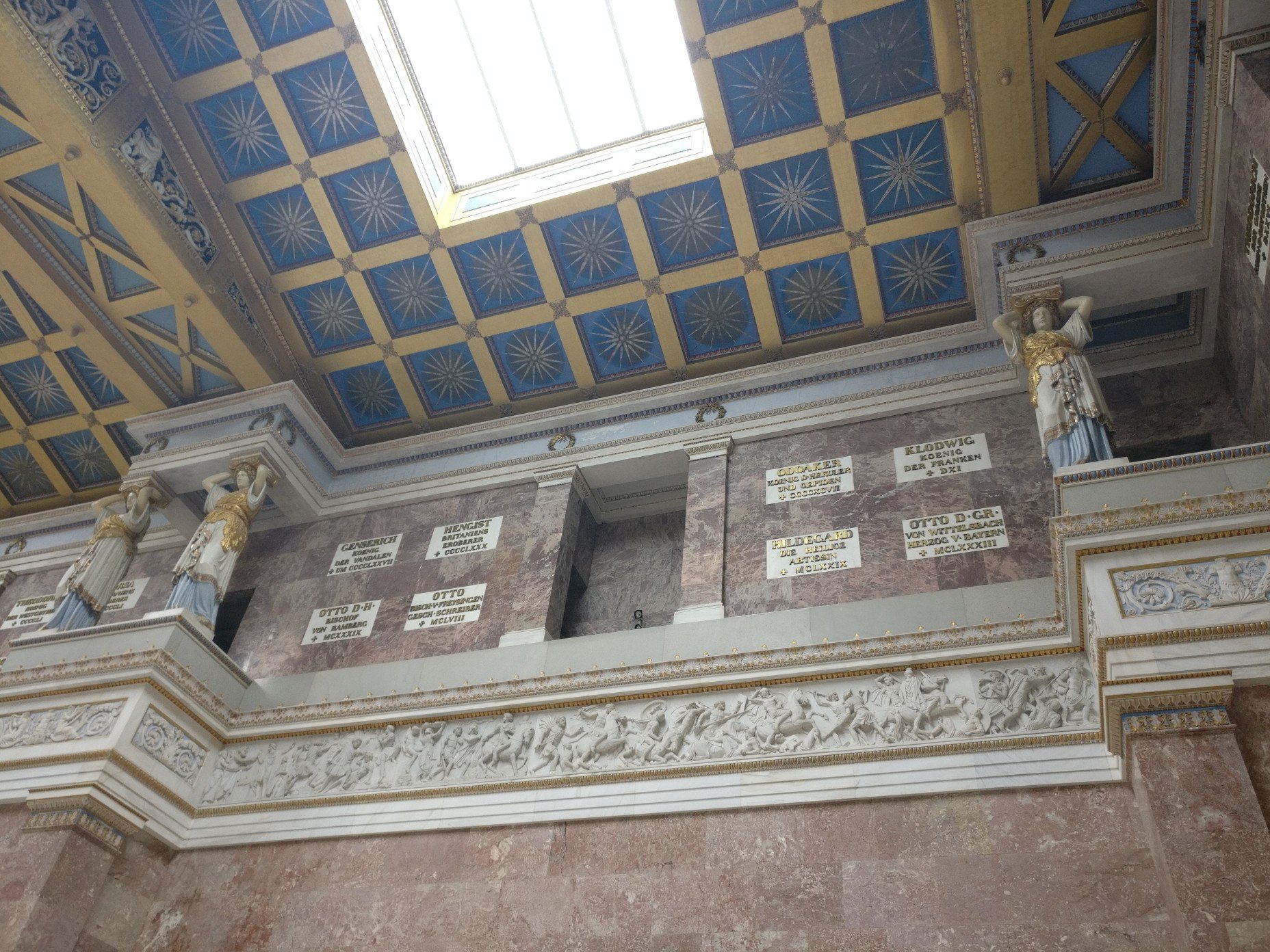 Auch dieses Monument wurde von Ludwig I. in Auftrag gegeben und soll an die gewonnene Völkerschlacht bei Leipzig und die beteiligten Feldherren und Regimenter erinnern. Wäre diese Schlacht verloren gegangen würden wir heute vermutlich alle französisch sprechen und Frösche essen 😁.