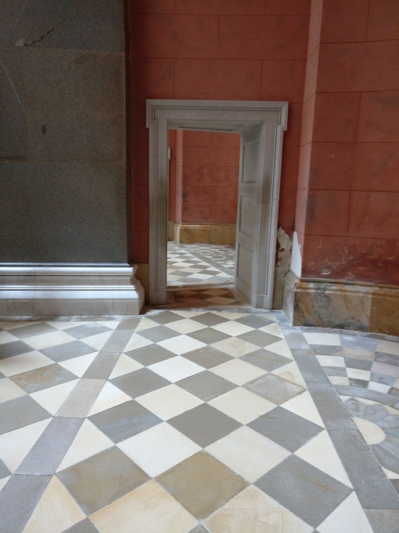 Interessant ist auch, dass das Gebäude eigentlich aus verputztem Ziegelmauerwerk besteht und die Steinquaderoptik nur aufgemalt ist und es schon immer war.